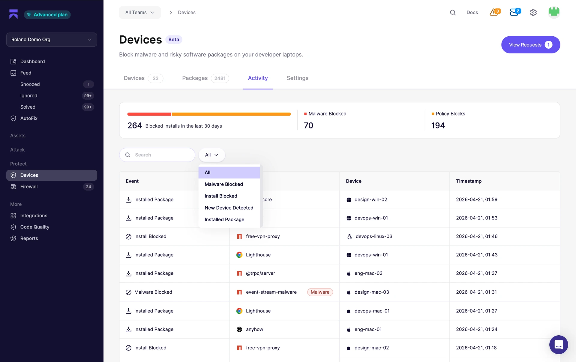 Your code is secured. Your cloud is monitored. But the laptop your developer is working on right now? That's the new attack surface. Endpoint Protection blocks malicious packages, extensions, and AI tools before they ever reach the machine.